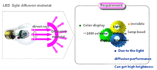 In LED, the light diffusion material need to shield lamp beads and get high brightness.