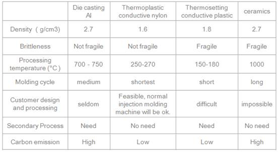 l In the case of external convection is limited, the lower heat conduction coefficient plastics can replace the aluminum radiator without increasing the temperature.